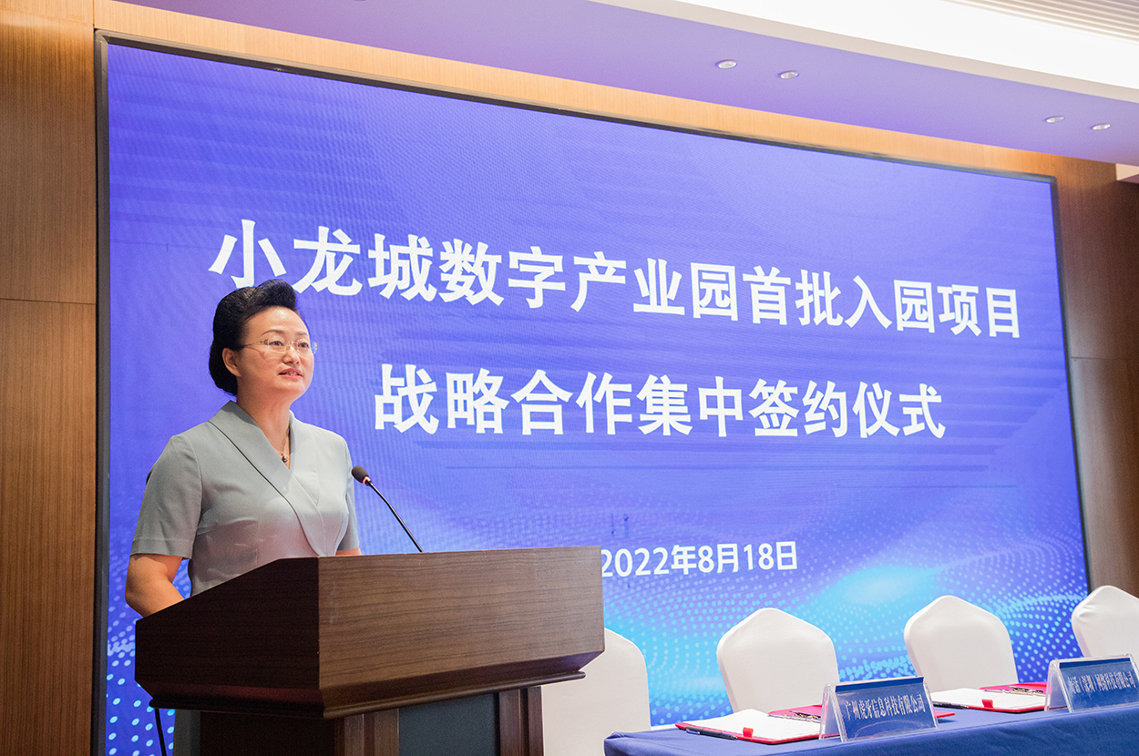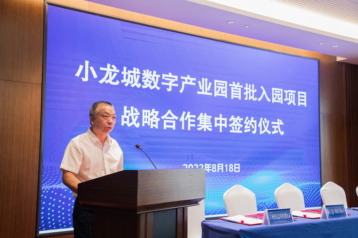 8月18日上午,小龍城數(shù)字產(chǎn)業(yè)園首批入園項目戰(zhàn)略合作集中簽約儀式舉行。岳陽市政府副市長魏淑萍,岳陽樓區(qū)委副書記、區(qū)長白再興,市交投集團黨委副書記、總經(jīng)理諶曦共同見證簽約。岳陽樓區(qū)委常委、常務(wù)副區(qū)長亓磊主持儀式。