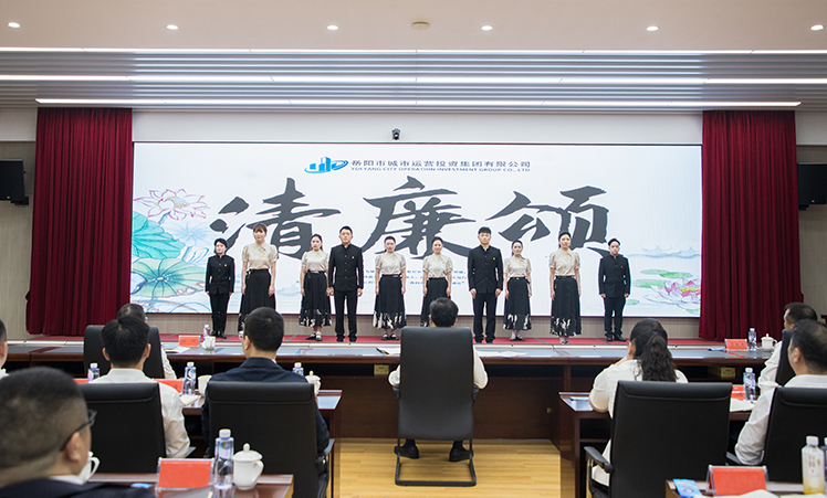 ▲與會(huì)人員觀看市城運(yùn)集團(tuán)紀(jì)檢干部集體朗誦的《清廉頌》