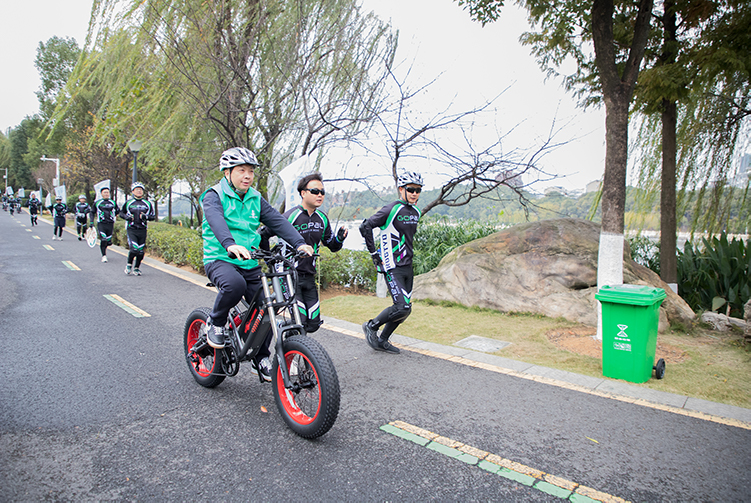 雖伴寒風(fēng),但難掩騎友們的熱情。上午9點(diǎn)40分,隨著一聲號(hào)令,由市直有關(guān)單位黨員干部職工代表、市民代表組成的300多名騎行愛好者,戴著頭盔、身著騎行服,精神抖擻,沖勁十足,整裝待發(fā)?;顒?dòng)隊(duì)伍開始沿著美麗的王家河畔環(huán)湖道逆時(shí)針騎行,全程13.5公里,沿途綠意盎然、風(fēng)景秀美。騎行隊(duì)伍伴著柔美的湖光山色,一路上好景不斷,大家盡情享受著騎行的樂趣,用活力和激情描繪出人與自然完美融合的美麗畫卷。