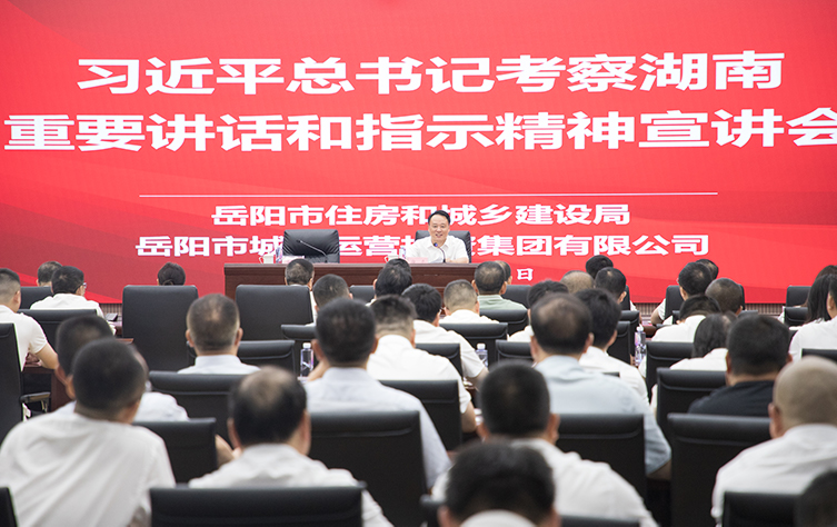 領(lǐng)悟思想偉力,推動(dòng)城市發(fā)展,6月12日上午,學(xué)習(xí)貫徹習(xí)近平總書(shū)記考察湖南重要講話(huà)和指示精神專(zhuān)題宣講會(huì)走進(jìn)市城運(yùn)集團(tuán)。市住建局黨組書(shū)記、局長(zhǎng)徐平主講,市城運(yùn)集團(tuán)黨委副書(shū)記、總經(jīng)理諶曦主持宣講會(huì)。市住建局、市城運(yùn)集團(tuán)黨員干部共150人參加宣講會(huì)。
