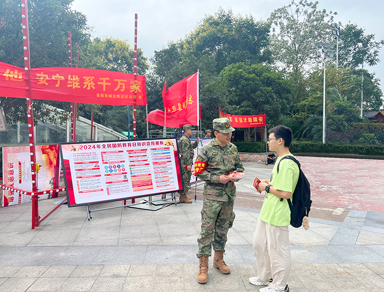 普法國防教育,履行國防義務(wù)。今年9月21日,是第24個全民國防教育日,全民國防教育日是國家設(shè)定的對全民進(jìn)行大規(guī)模國防教育的主題活動日,也是群眾性國防教育活動的形式之一。為進(jìn)一步提升公眾國防觀念、國防素養(yǎng),掌握基本的國防知識,當(dāng)天上午,市城運(yùn)集團(tuán)組織民兵開展全民國防教育日主題宣傳活動。集團(tuán)黨委委員、副總經(jīng)理龍強(qiáng)全程參與。