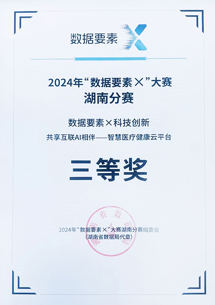 在2024年“數(shù)據(jù)要素X”大賽湖南分賽中,市城運集團智城公司的智慧醫(yī)療項目:共享互聯(lián)、AI相伴——智慧醫(yī)療健康云平臺獲大賽科技創(chuàng)新賽道三等獎。