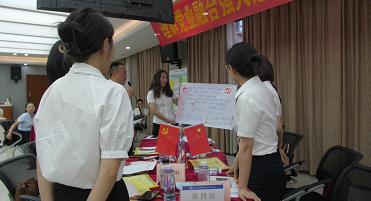 在“黨業(yè)融合項(xiàng)目策劃”環(huán)節(jié)中,各小組破題立論,圍繞“正確理解黨建與業(yè)務(wù)的關(guān)系”“黨建創(chuàng)新的核心能力是什么”“聚焦問(wèn)題的核心內(nèi)容是什么”等問(wèn)題,通過(guò)場(chǎng)景模擬、角色扮演、情景再現(xiàn)、小游戲等形式,模擬如何聚焦問(wèn)題、強(qiáng)化結(jié)果做好項(xiàng)目策劃。一組組數(shù)據(jù)對(duì)比、一幅幅畫(huà)面呈現(xiàn)、一個(gè)個(gè)案例剖析,以及現(xiàn)場(chǎng)推演和角色扮演,讓人沉浸到教學(xué)中,充分感受到黨建思維、黨建魅力、黨建力量,真正實(shí)現(xiàn)黨建與工作的深度融合。