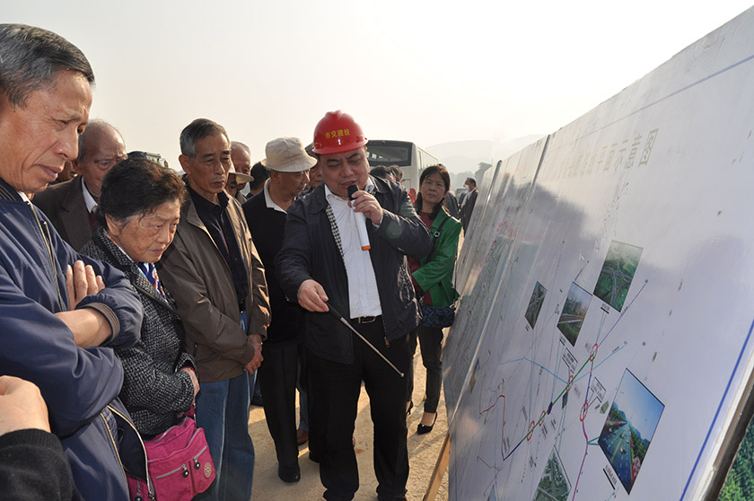 10月27日,在農(nóng)歷傳統(tǒng)重陽節(jié)即將到來之際,市人大常委會黨組書記、常務副主任、市交通建設大會戰(zhàn)指揮長向偉雄率領近百名市人大的老同志參觀我司臨湖公路項目建設,市人大常委會秘書長駱岳梨隨行參觀。