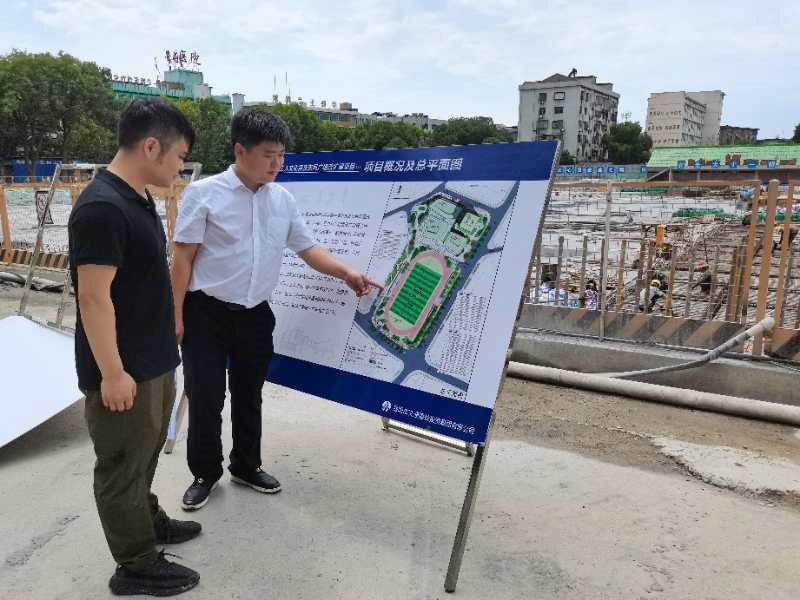 工人文化宮及東風廣場改擴建項目負責人宋維(右)講解施工方案家住廣場附近的居民萬院分經(jīng)常來這里散步,看到項目建設(shè)速度快,交通也很通暢,他和周圍的居民都很滿意,并滿懷期待項目建成后給大家?guī)砀嗟谋憷?