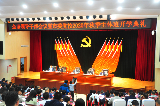 9月22日上午,全市領(lǐng)導(dǎo)干部會(huì)議暨市委黨校2020年秋季主體班開(kāi)學(xué)典禮舉行,進(jìn)一步傳達(dá)學(xué)習(xí)習(xí)近平總書記在湖南考察調(diào)研時(shí)的系列重要講話指示精神,部署貫徹落實(shí)工作,動(dòng)員全市上下把習(xí)近平總書記的親切關(guān)懷轉(zhuǎn)化為干事創(chuàng)業(yè)的強(qiáng)大動(dòng)力。市委書記王一鷗作專題輔導(dǎo)報(bào)告,市委副書記陳愛(ài)林主持,談?wù)t、王武、王伊亮等市級(jí)領(lǐng)導(dǎo)出席。