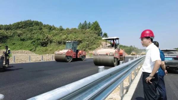 來到項(xiàng)目施工地,公路上來來往往的鋪路機(jī)、壓路機(jī)已經(jīng)開始鋪設(shè)瀝青,綠化帶上工人們也開始挖樹坑做綠化建設(shè)?!氨称稹碧栚s進(jìn)度,現(xiàn)場(chǎng)一片熱火朝天。
