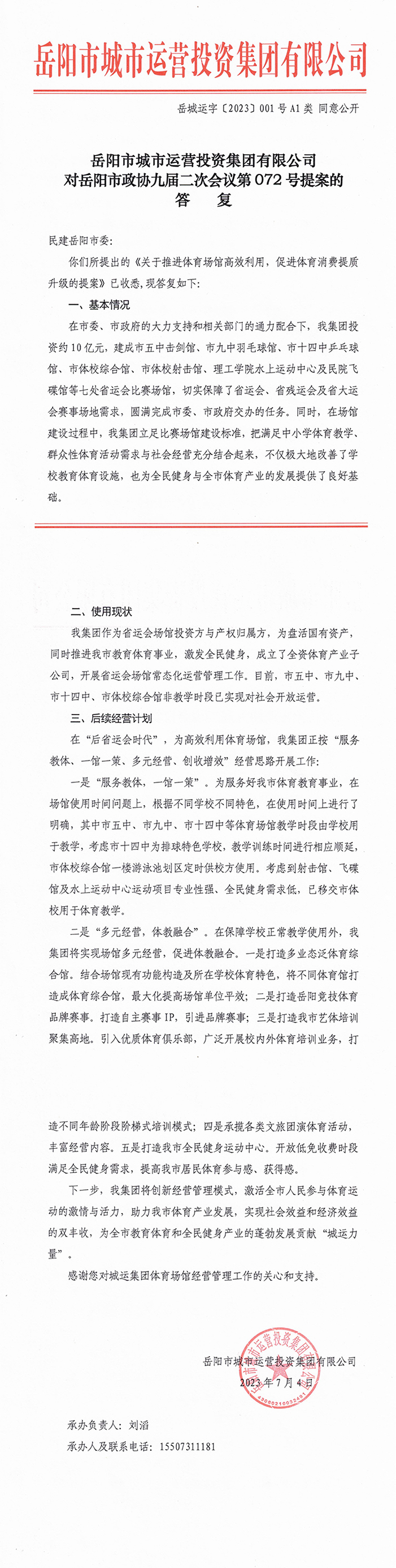 對岳陽市政協(xié)九屆二次會議第072號提案的答復