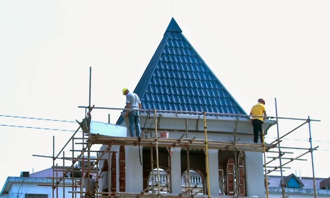材料吊運、混凝土澆筑、外墻裝修……幾百余名工人在各自施工區(qū)域緊張有序地作業(yè),確保學(xué)校9月初能正式開學(xué)。