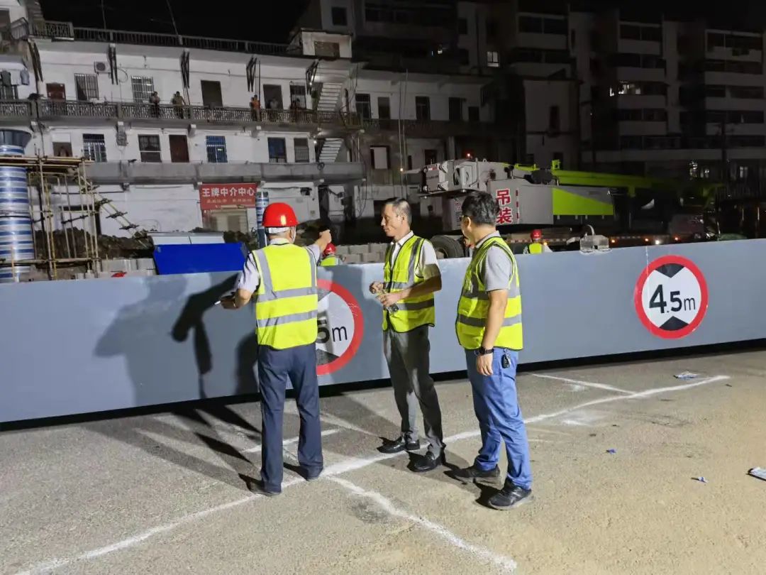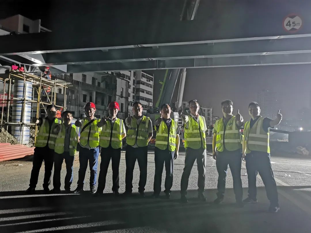市交投集團黨委委員、副總經理易朝暉現(xiàn)場調度,市質監(jiān)站主要負責人現(xiàn)場指導,市交警支隊疏導交通,相關施工監(jiān)理設計等單位主要負責人也全程參與。