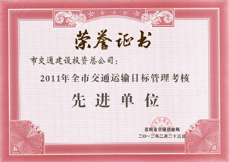 2011年度全市交通運輸目標(biāo)管理考核先進單位