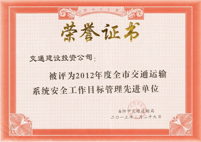 2012年度全市交通運(yùn)輸系統(tǒng)安全工作目標(biāo)管理先進(jìn)單位