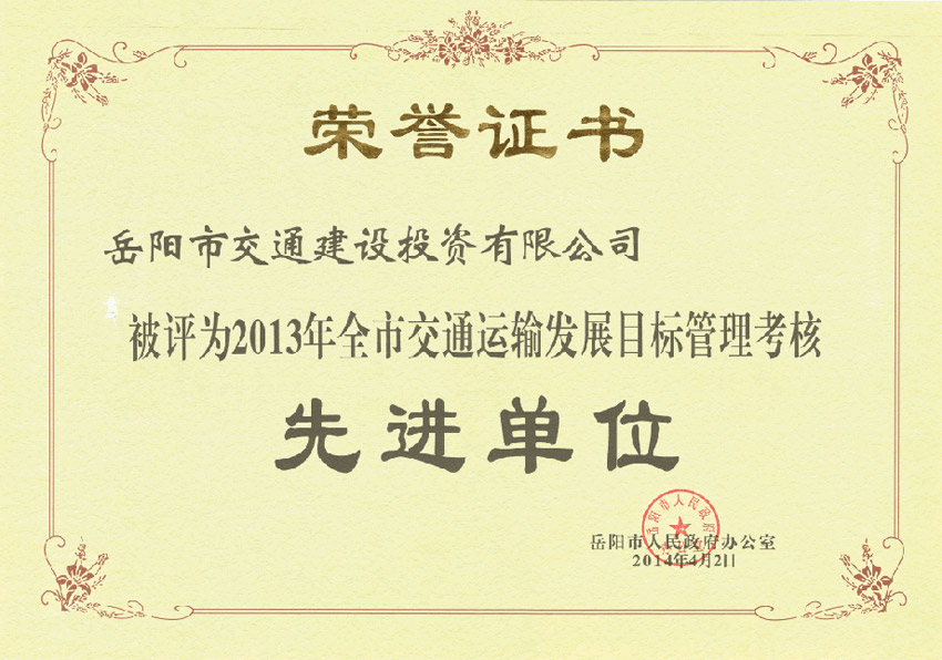 2013年度全市交通運(yùn)輸發(fā)展目標(biāo)管理考核先進(jìn)單位