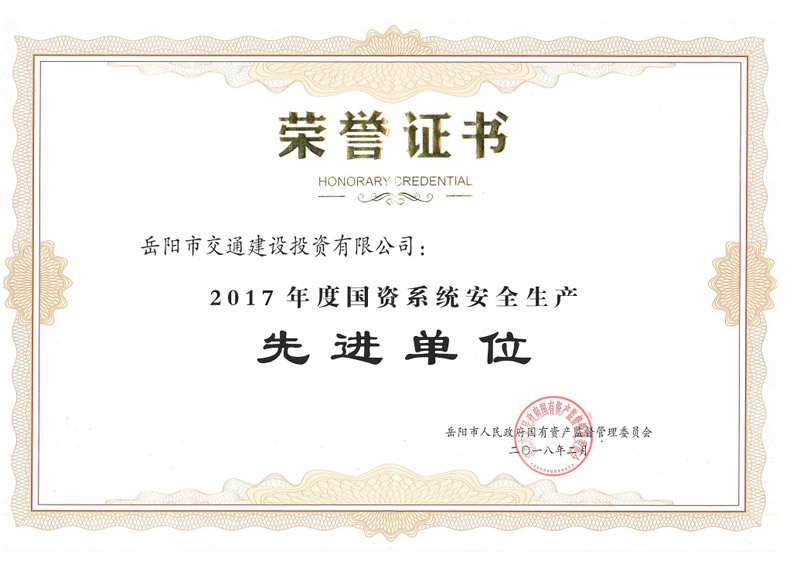 2017年度國資系統(tǒng)安全生產(chǎn)先進(jìn)單位