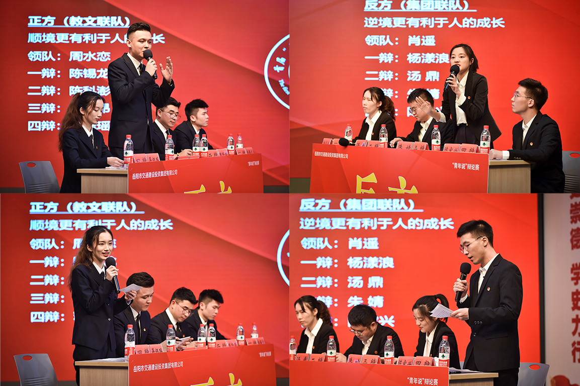 來(lái)自集團(tuán)聯(lián)隊(duì)和教文聯(lián)隊(duì)的8位辯手以《是順境還是逆境更有利于人的成長(zhǎng)》為辯題展開(kāi)辯論,最終教文聯(lián)隊(duì)獲勝,堅(jiān)定順境更有利于人的成長(zhǎng)。反方一辯楊漾浪榮獲“最佳辯手”。