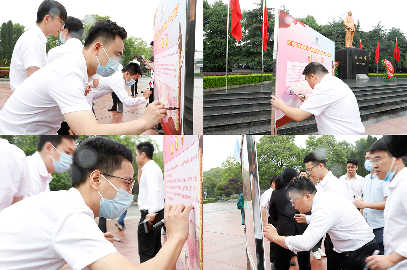 青年干部們首先在任弼時(shí)銅像前集體敬獻(xiàn)花籃,緬懷革命先烈,儀式后依次在市交投集團(tuán)年輕干部扣好廉潔從業(yè)“第一??圩印背h書(shū)上簽名。