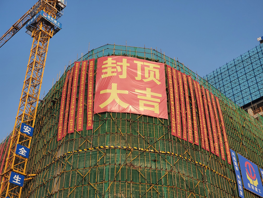 市工人文化宮改擴(kuò)建項目由ABC三棟主樓構(gòu)成,C棟于2021年12月30日完成主體結(jié)構(gòu)封頂,B棟于2022年8月2日完成主體結(jié)構(gòu)封頂。
