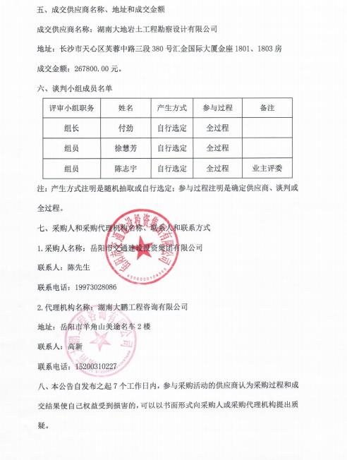 岳陽(yáng)市南湖景區(qū)周邊地下停車場(chǎng)項(xiàng)目勘察服務(wù)采購(gòu)項(xiàng)目 競(jìng)爭(zhēng)性談判成交結(jié)果公告