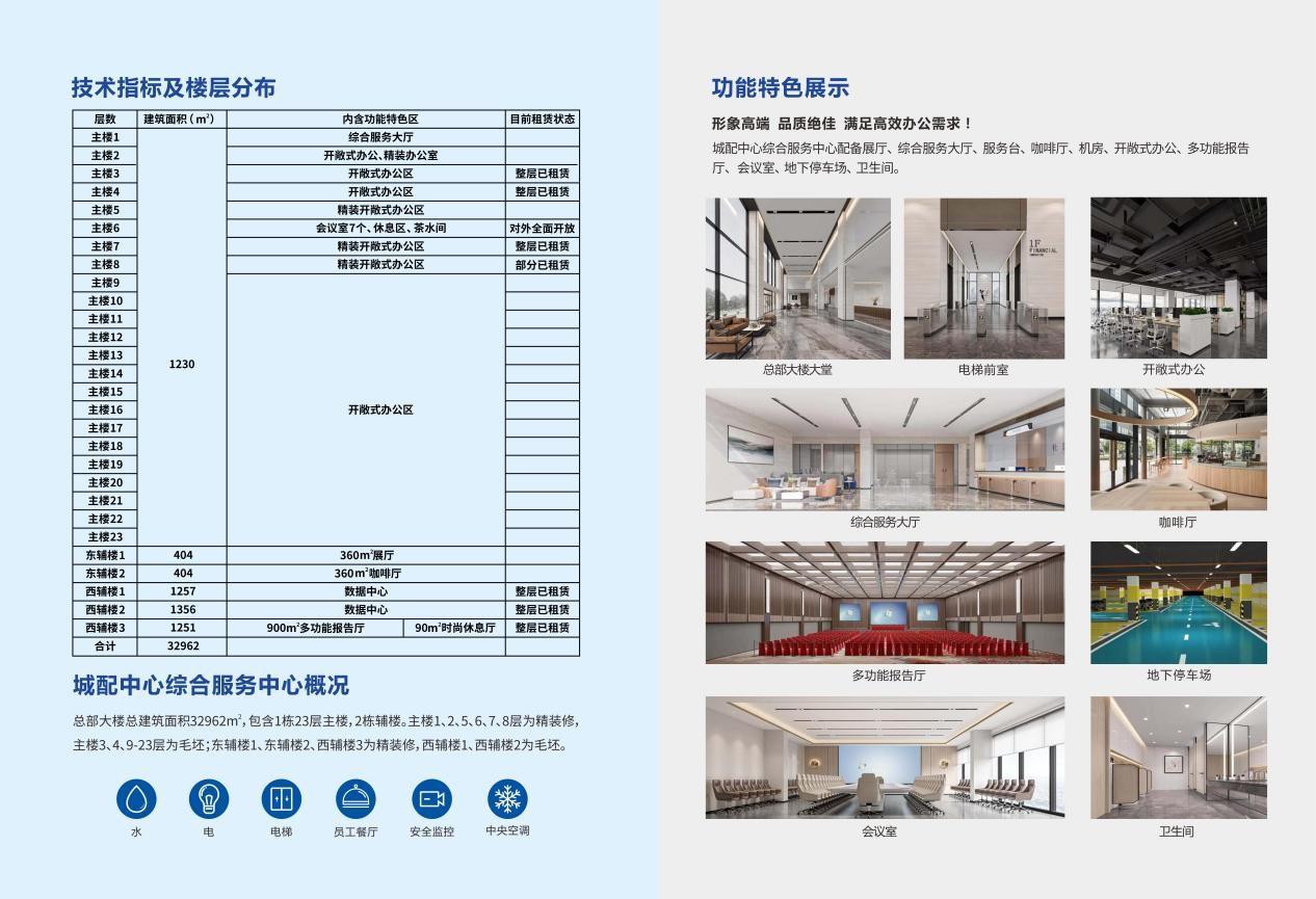 綜合服務(wù)大廳、服務(wù)臺、咖啡廳、機(jī)房、開敞式辦公區(qū)、多功能報告廳、會議室層、地下停車場、衛(wèi)生間。
